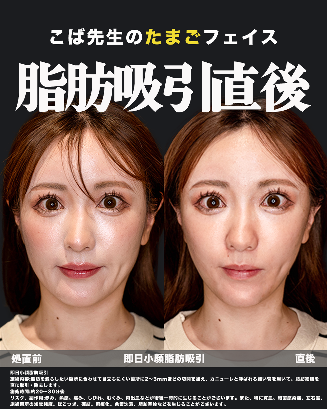 これまでの脂肪吸引と比較して術後の腫れが格段に少なく、術後にフェイスバンドで固定する必要がありません。